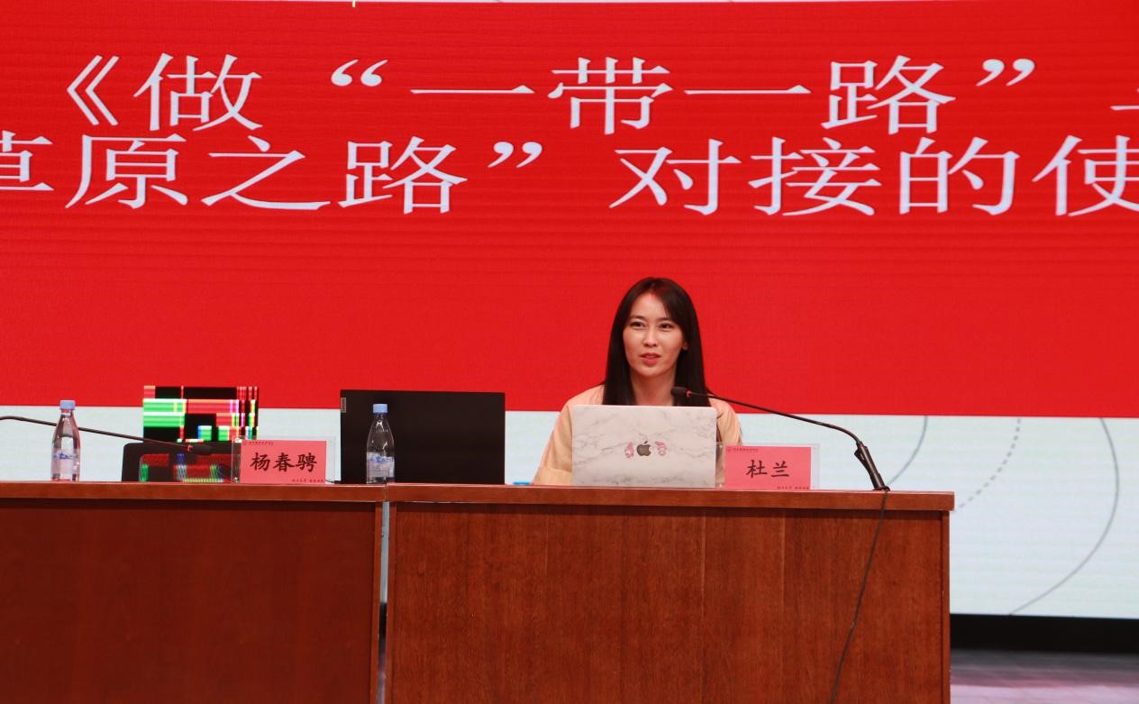 接着,杜兰女士以“一带一路”建设在蒙古国落地生根为主线,分别以中国政府无偿援建的蒙古国规模最大的市政工程项目之一—“雅尔玛格立交桥”项目、蒙古国最大、最现代化、功能最齐全的“残疾儿童康复治疗场所”项目、蒙古国家体育馆项目、蒙古国立大学孔子学院及旅蒙华侨友谊学校项目为例,回顾了上世纪五六十年代中国援助蒙古国经济社会发展的友好故事。她通过丰富的图片、珍贵的记录片镜头和实例,展示了中国“一带一路”倡议与蒙古国“发展之路”的战略对接与两国经贸务实合作蓬勃发展的大好局面,展望了在“一带一路”倡议引领下,中蒙关系发展的光明前景,全方位、立体式地呈现了中蒙两国穿越时间和空间的深厚友谊。