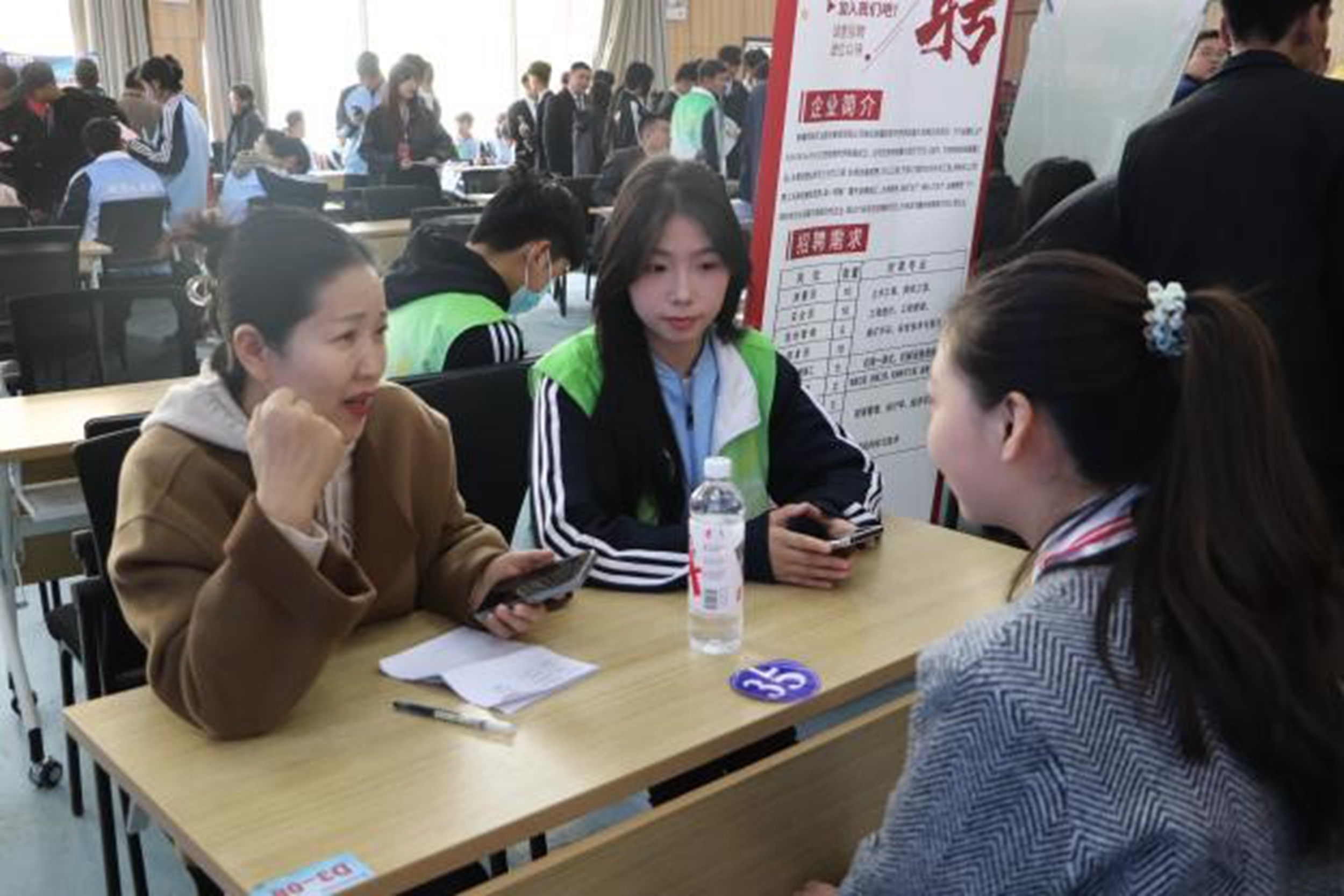 招聘会现场,校领导与多家参会企业进行交谈,认真了解企业招聘需求以及薪酬待遇情况。本次招聘会共有77家用人单位参与,提供岗位223个,招聘需求人数4013人,覆盖了土木水利、教育艺术、新能源工程、机电制造、生物化工、电子信息、经济管理等行业领域,参会人数共有5800多名。