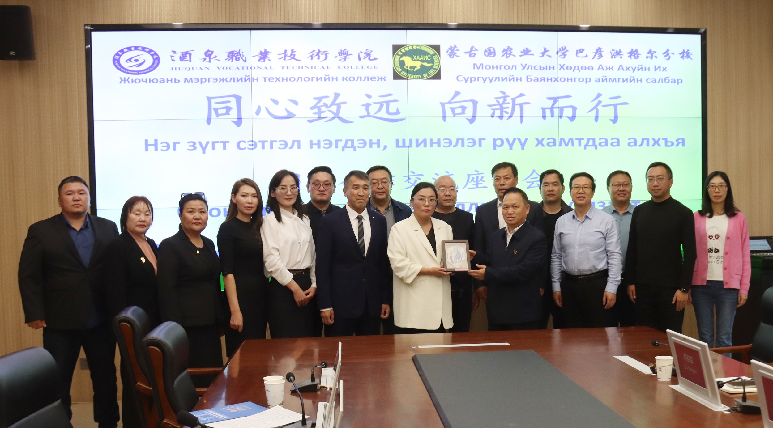 座谈会上,王立智致辞向远道而来的老师和同学们表示热烈的欢迎。他表示,甘肃与蒙古国巴彦洪格尔省和戈壁阿尔泰省是重要的合作伙伴,酒泉市与巴彦洪格尔市缔结了国际友好城市。学校与蒙古国农业大学和巴彦洪格尔分校分别签署了合作协议,今后将以此次交流座谈为契机,相互学习,相互交流,分享经验,共同进步,深化合作,进一步了解蒙古国的职业教育发展动态和人才需求,为学校的国际化发展提供参考和支持。