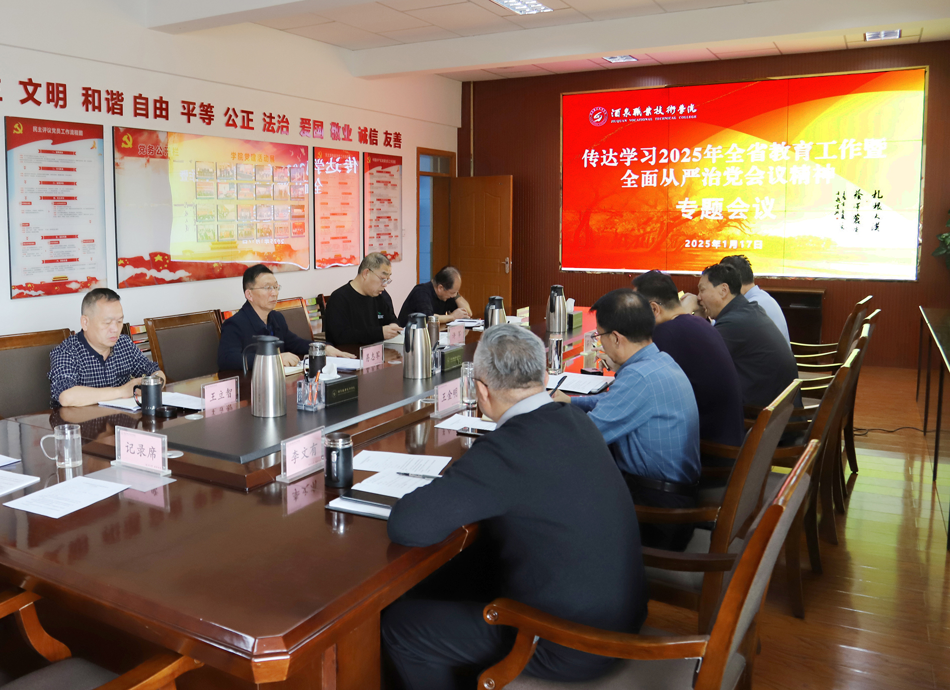 2025年1月17日,学院党委召开专题会议传达学习2025年全省教育工作暨全面从严治党工作会议精神,安排部署贯彻落实工作。
