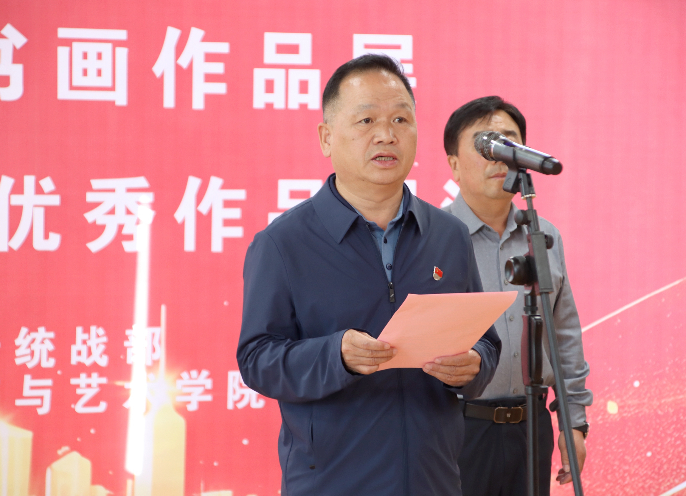 王立智致辞表示,大学文化是兴校之魂,文化育人是高等教育德育建设的重要抓手和载体,学校始终坚持“以美育人、以文化人”的教育理念,落实五育并举方针、精准提升校园文化内涵,秉承“以艺润心、以技载道”的发展理念,将传统书画艺术与职业教育的特色相融合,为全校书画艺术爱好者搭建了感悟文化之美、锤炼技艺之精的实践平台,营造了崇德尚美、格调高雅的校园文化氛围。