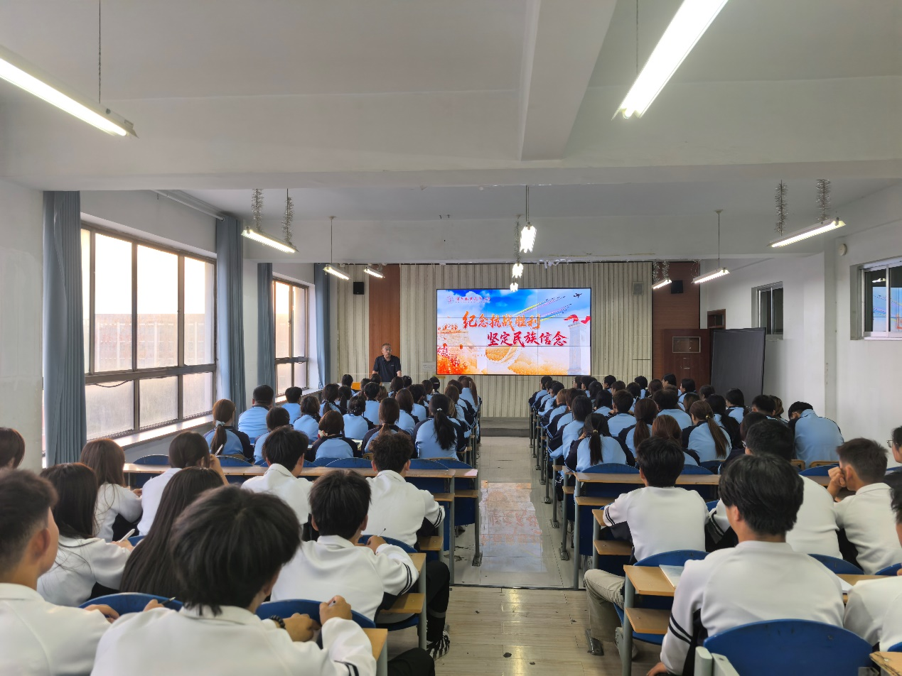 2025年9月4日,为教育引导学生铭记历史、缅怀先烈,筑牢信仰之基、赓续红色血脉、锤炼奋斗之志,学校党委副书记、校长许军为旅游与烹饪学院、电子与信息工程学院学生讲秋季学期形势与政策课第一课,这既是新学年送给广大学生的最珍贵的开学礼物,更是传承和弘扬伟大抗战精神的“大思政课”。