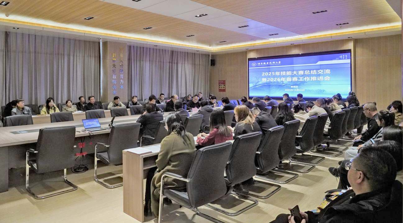会议通报了学校2025年技能大赛获奖情况,随后赛项指导教师和获奖教师代表进行了总结交流。会议对2025年大赛整体情况进行了系统分析,提出通过系统选拔、精心培育和精准对标来提升教师教学能力与学生技能水平,对2026年各类竞赛提出明确目标,并就备赛工作作出细致安排和周密部署。