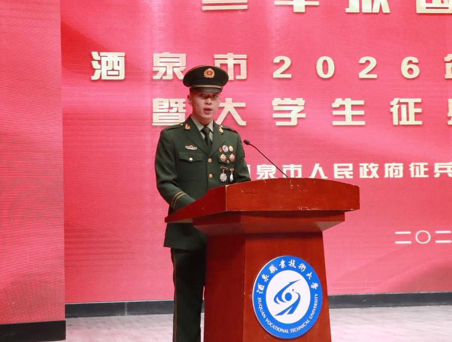 要闻快递 > 正文2025年12月19日下午,酒泉市2026年征兵宣传进校园暨大学生征兵工作启动仪式在酒泉职业技术大学胡杨活动中心举行。本次活动由酒泉市人民政府征兵办公室主办,酒泉职业技术大学、肃州区人民政府征兵办公室共同承办,旨在深入贯彻习近平强军思想,进一步激发广大青年学子投身国防、报效祖国的热情,为新时代国防和军队现代化建设输送高素质兵员。