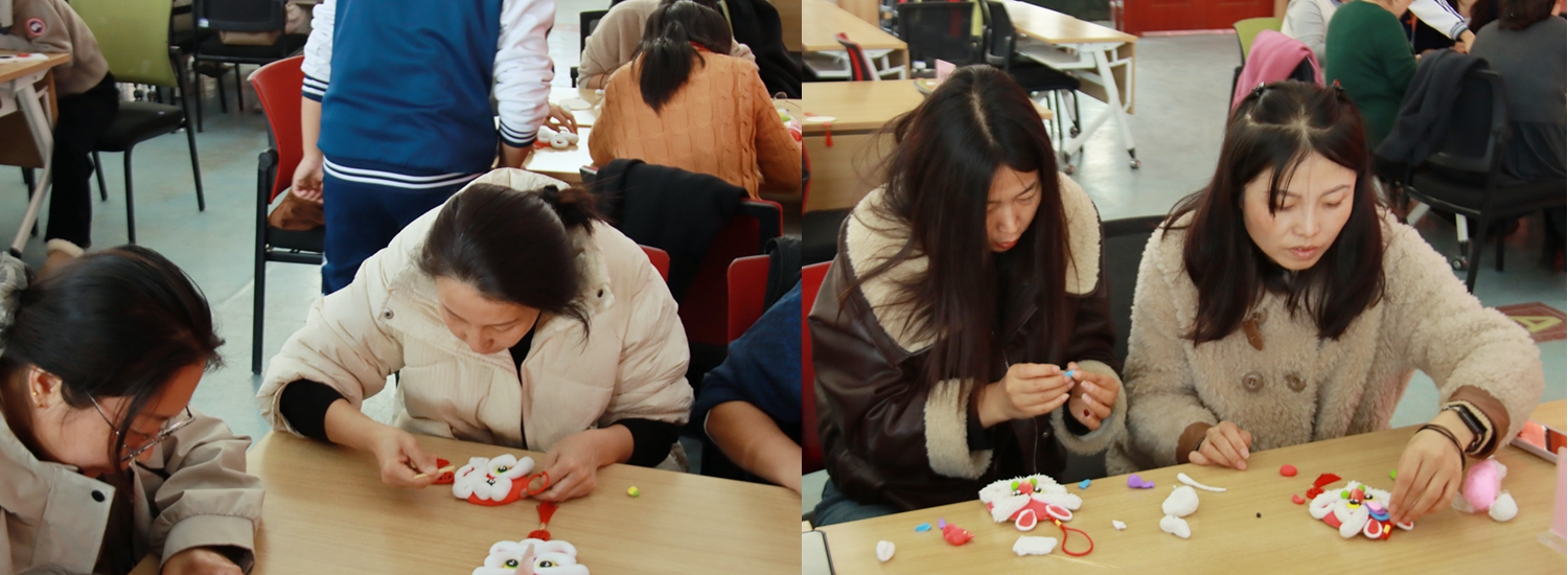 女教职工们热情高涨、兴致盎然,纷纷拿起五彩面团,跟着老师的步骤认真创作。揉面塑形、雕琢眉眼、粘贴鬃毛与铃铛,一边交流心得,一边用心勾勒,在指尖的揉捏雕琢中,感受传统手艺的温度与巧思。原本普通的面团,在大家的巧手下变成一只只威风灵动、形态各异的醒狮面塑,每一道纹路都藏着吉祥寓意,每一次塑形都是文化传承,这不仅是手工体验,更是一场非遗文化之旅。