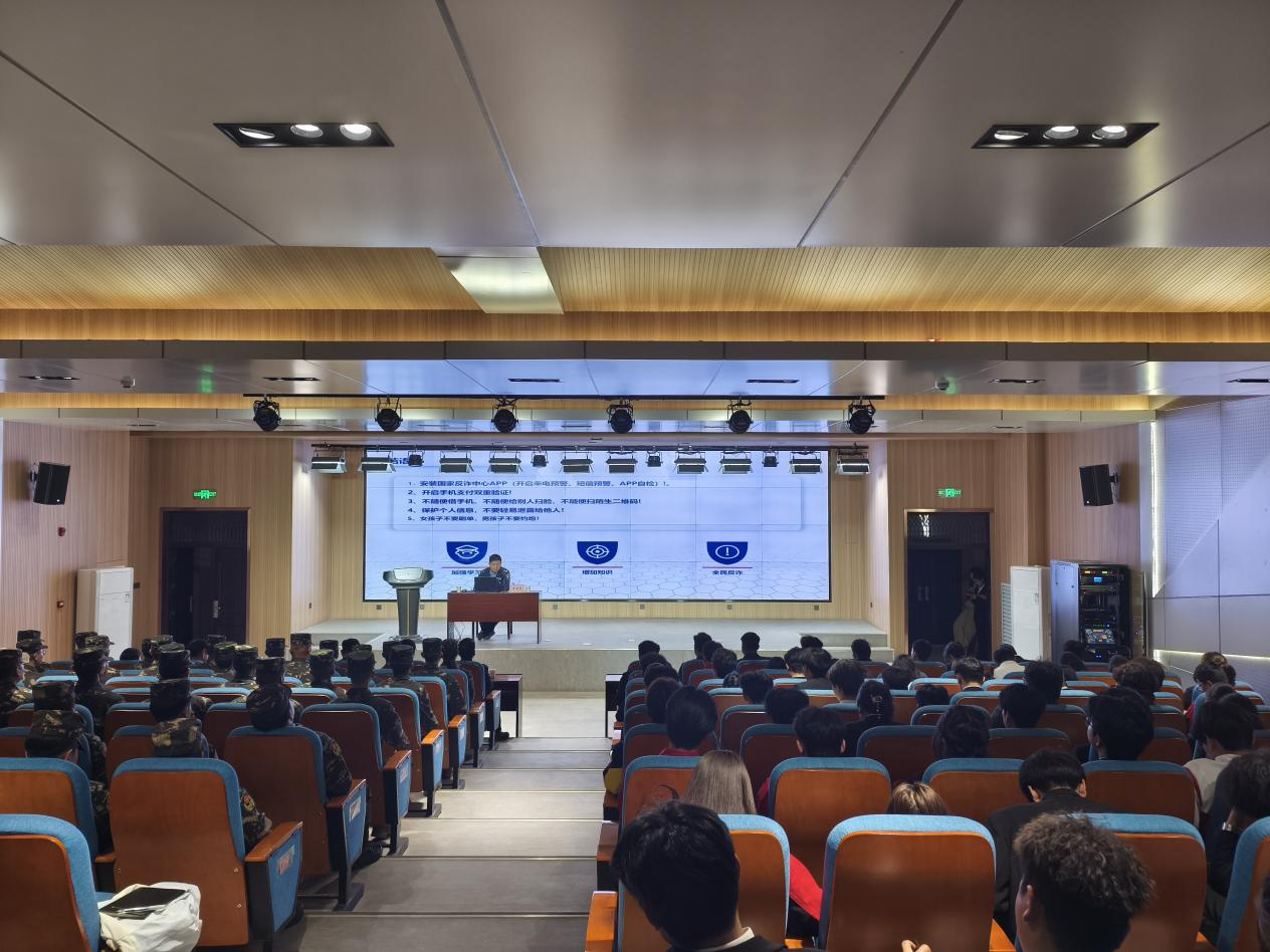 本次讲座以鲜活案例为切入,以透彻剖析为支撑,为师生上了一堂生动的法治教育课。同学们普遍表示,通过聆听讲座,对电信网络诈骗的惯用伎俩有了更为清醒的认识,今后将时刻保持警惕,坚决避免成为诈骗分子的侵害对象,自觉抵制各类违法出租出借行为。活动采取“线下主会场+线上直播”形式,实现了对全校学生的全覆盖教育,有效提升了学生的法治素养和防范能力,为深入推进平安校园建设奠定了坚实基础。(信息员:学生工作部 张嘉怡)