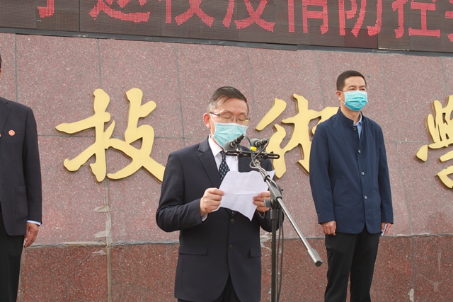 在演练之前,学校举行了简短的实操演练动员会。党委书记、校长易志军作讲话,他要求全体参演人员一要提高政治站位,充分认识做好疫情防控工作的重要性和必要性,以实战态度对待演练,服从大局、听从指挥。二要强化责任担当,明确工作职责,熟悉工作流程,相互配合补位,形成联防合力。三要全面执行演练预案,严把流程环节,杜绝防控漏洞,力争将演练取得的结果作为实战经典案例。