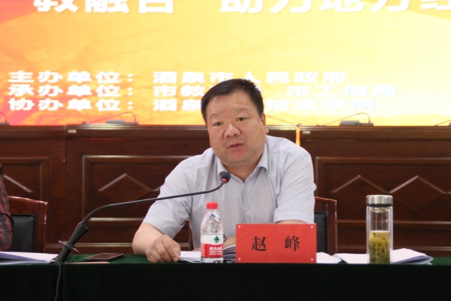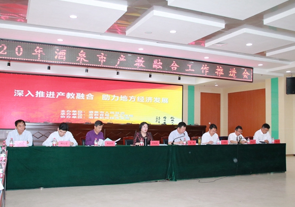 要闻快递 > 正文6月3日,由酒泉市人民政府主办、市教育局和市工信局承办,酒泉职业技术学院协办的2020年酒泉市产教融合工作推进会在酒泉职业技术学院召开。市政府副市长任晓敏、市政府副市长赵峰、市政府副秘书长刘治国、市政府副秘书长白苍松、市委教育工委书记,市教育局党组书记、局长杨培荣、市教育局副局长邹志平、市工信局副局长王卫东以及酒泉职业技术学院党委书记、校长易志军等领导出席会议。