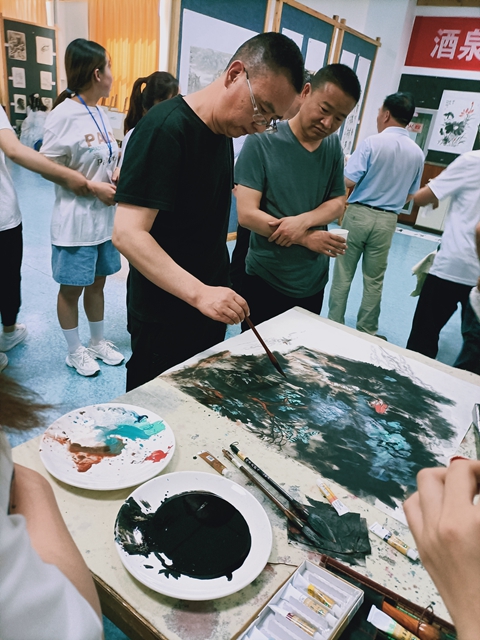党委委员、副校长王立智主持开幕式;中国美术家协会、中国书法家协会、酒泉市美协、酒泉市肃州画馆等领导嘉宾出席开幕式,学校部分教师以及200多名学生参加开幕式。