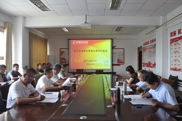 党委书记、校长易志军,党委委员、副校长薛仰全,党委委员、宣传统战部部长王金明、马克思主义学院院长聂峰以及全体思政教师和各党支部专职副书记参加汇报会。