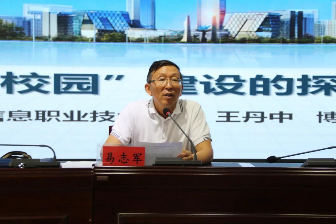 随后,王丹中博士以《“智慧校园”建设的探索与实践》为主题做专题报告。学校党委书记、校长易志军在主持中讲到,“智慧校园”的建设是深化课程改革的需要,对实现教育和信息化的深度融合具有重要推动作用。“智慧校园”是信息时代教育模式发展的新需求,在这个新时期,我们的教育思想核心价值观发生变化、信息技术的核心价值观也在发生变化,教育模式更在发生着天翻地覆的变化。