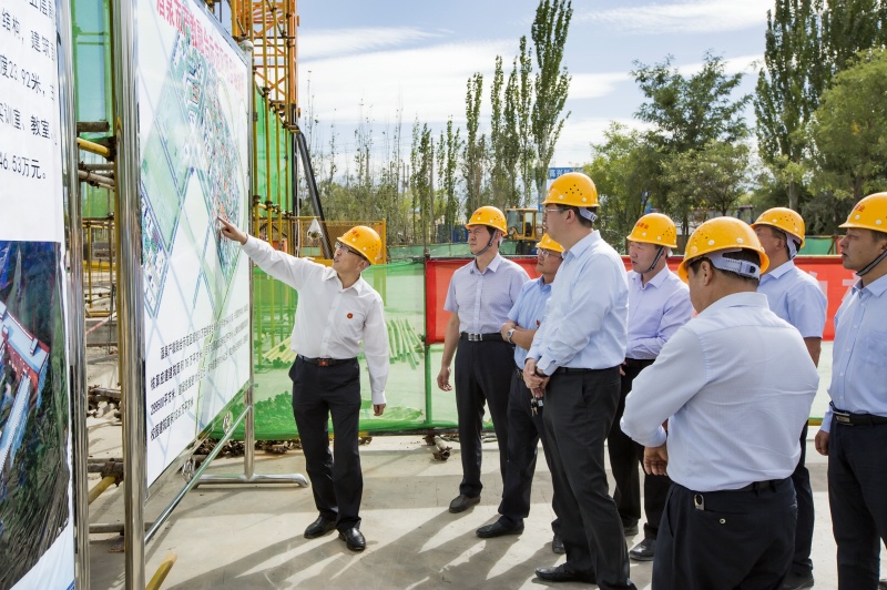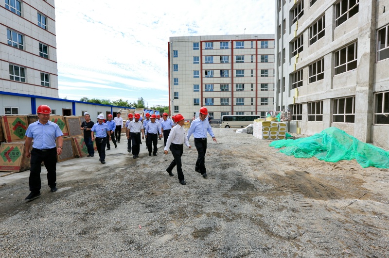 王立奇市长一行深入施工现场实地查看了飞天公寓4号楼,5号、6号教学实训楼施工建设情况,并认真听取了关于建设项目的建设规模、功能布局、施工进度及施工安全等方面工作情况的汇报。