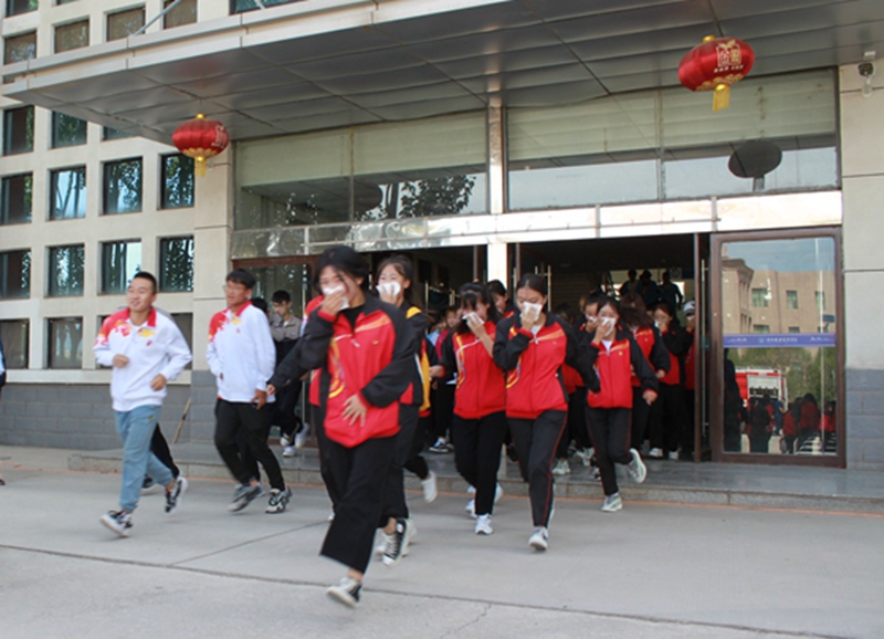 下午15:00,演练活动正式开始。首先进行了疏散演练,此次疏散演练的主要内容是模拟起火,发生火灾后师生如何自救逃生,熟悉消防器材的使用。演练现场,师生用湿毛巾或手捂住嘴巴,弯腰,迅速有序地从工科实训中心实训室跑出,到达应急集合点,同时酒泉市肃州区消防救援大队唐队长对消防知识及灭火器的使用进行了讲解。随后,酒泉市肃州区消防救援大队的官兵与学生开展了趣味运动会,学生踊跃参加了消防水带接力跑、消防员变装等活动。