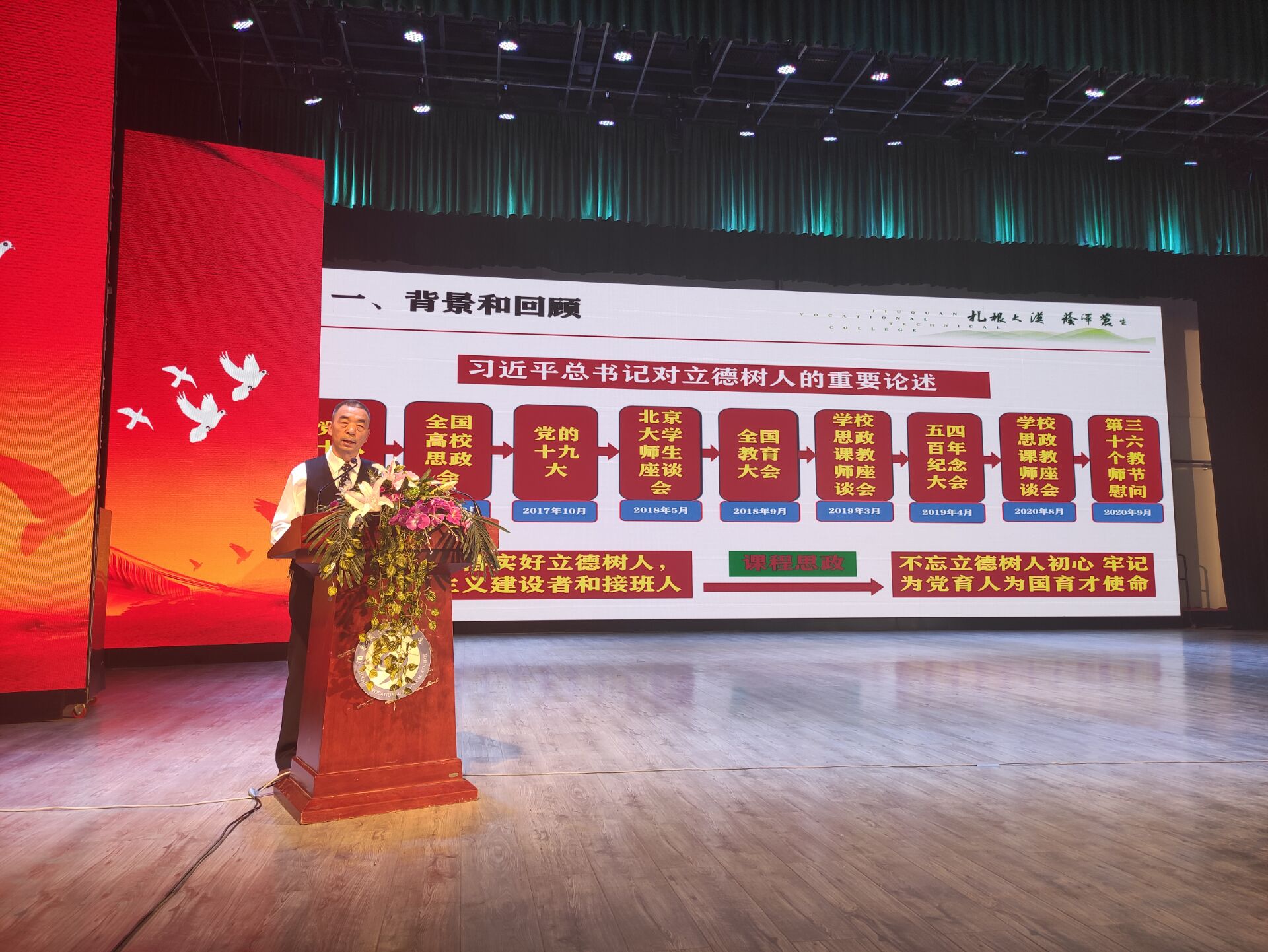 要闻快递 > 正文为深入学习贯彻全国高校思想政治工作会议、全国教育大会和习近平总书记在学校思想政治理论课教师座谈会上的讲话精神,落实教育部印发的《高等学校课程思政建设指导纲要》要求,交流总结学校课程思政建设经验,安排部署今后一段时期的思想政治工作,推动全员全程全方位育人走向纵深,9月29日,学校召开课程思政论坛。学校党委书记、校长易志军,副校长许军、王长荣,纪委书记、监察专员魏韡,全体中层干部、各学院无课教师参加论坛。许军主持论坛。