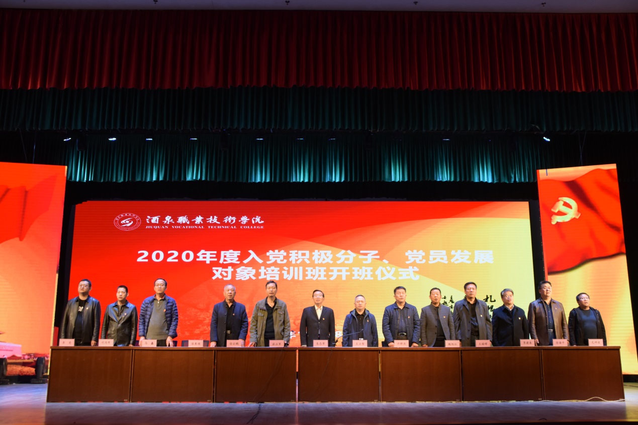10月28日,酒泉职业技术学院2020年度入党积极分子和党员发展对象培训班在胡杨文化活动中心举行了开班仪式。党委书记、校长易志军,党委委员、副校长王立智,组织人事处处长茹立军、各二级学院党支部副书记以及417名参训学员参加了开班仪式。副校长王立智主持开班仪式。
