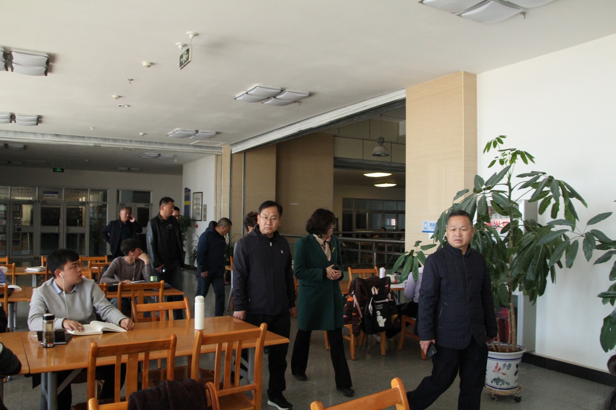 吴红一行在学校党委委员、副校长王立智的陪同下首先考察了体育场馆,随后考察了胡杨文化活动中心、烹饪实训酒店和师资培训楼,最后考察了图书馆四楼会议室。考察过程中,吴红详细了解了我校的场馆容量、能够接纳培训的人数和住宿人数。