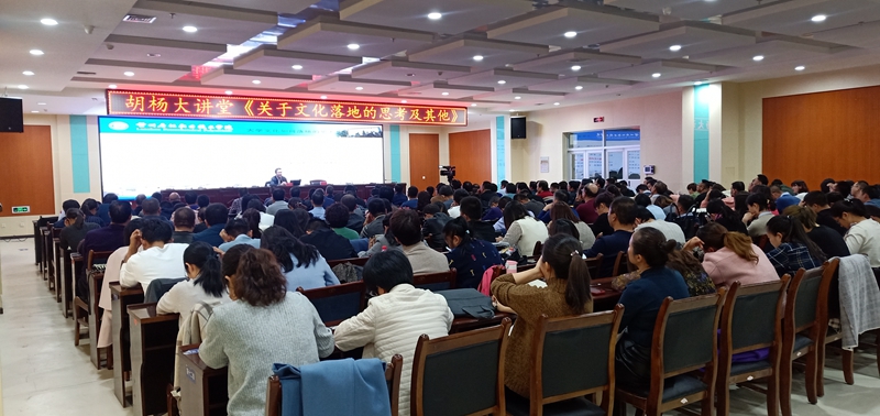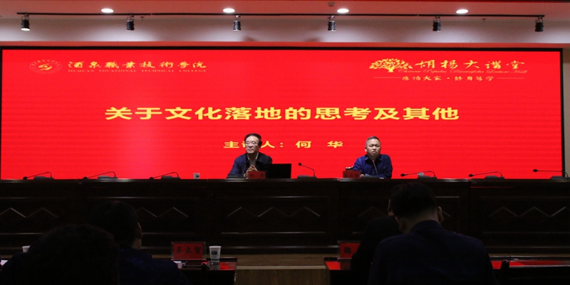11月12日,学校邀请兰州石化职业技术学院党委委员兼融媒体学院院长何华教授做了题为《关于文化落地的思考及其他》的胡杨大讲堂专题讲座。
