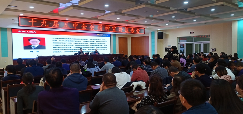 何华教授围绕十九届五中全会召开的背景、核心要义、主要成果、重要特点以及制定“十四五”规划建议处理的五大“关系”等几个方面传达了十九届五中全会精神,深刻解读了全会提出的一系列新的重要思想、重要论断、重大举措,深入剖析了到2035年基本实现社会主义现代化的远景目标和“十四五”时期经济社会发展的方针原则、主要目标、重点任务等内容。整场报告主题鲜明、内涵丰富、重点突出、思路清晰、见解独到,为我们进一步深刻理解全会精神、精心谋划十四五、奋力双高校开拓了思维,提供了借鉴,具有很强的政治性、思想性、针对性和指导性。