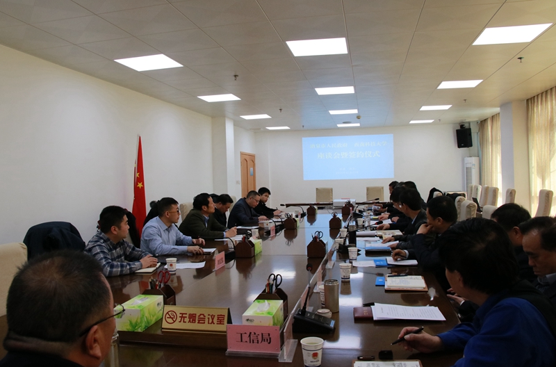11月23日,市政府与西南科技大学座谈会暨签约仪式举行。市委副书记、市长王立奇,西南科技大学校长董发勤出席座谈会,市政府副市长赵峰,市政府副秘书长、办公室主任朱建军,市委军民融合办常务副主任易钦,西南科技大学相关部门负责人参加签约仪式。座谈会由市委常委、常务副市长何效祖主持。