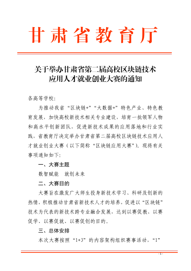 关于举办甘肃省第二届高校区块链技术应用人才就业创业大赛的通知