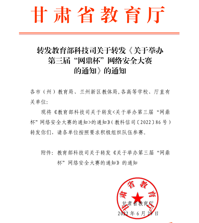 转发教育部科技司关于转发《关于举办 第三届“网鼎杯”网络安全大赛 的通知》的通知