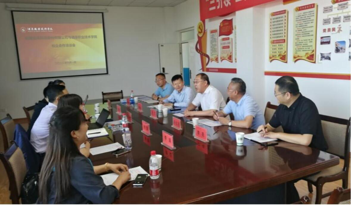 随后在致远楼319会议室开展座谈,双方就混合所有制学院建设、金风科技丰润中华助学方案实施、教学交流平台建设、师生员工定期互访、"1+X"证书培训等校企合作事项展开深入交流,并达成一致意见。