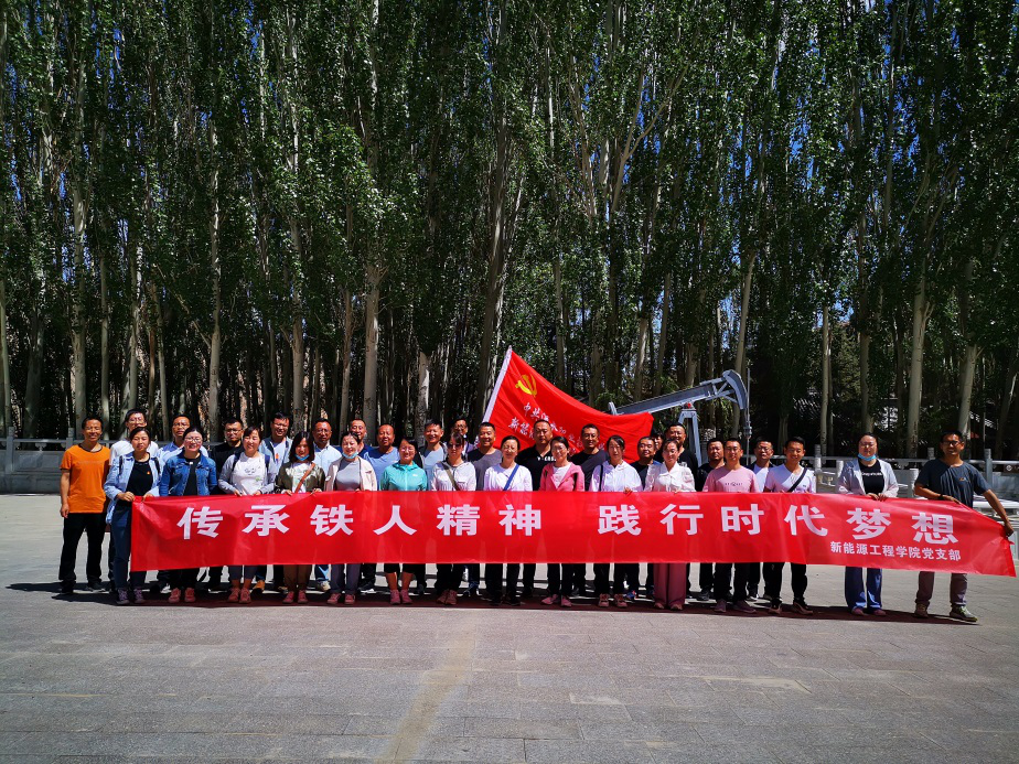 在中国共产党百年华诞之际,为扎实开展党史学习教育, 进一步增强党组织的凝聚力和战斗力,引导广大党员增强党性观念,坚定理想信念,感受革命精神的实质内涵,2021年6月26日,新能源工程学院党支部和本科教学部党支部全体党员赴酒泉市玉门铁人干部学院开展先锋.铸魂:“传承铁人精神、践行时代梦想”主题党日活动。
