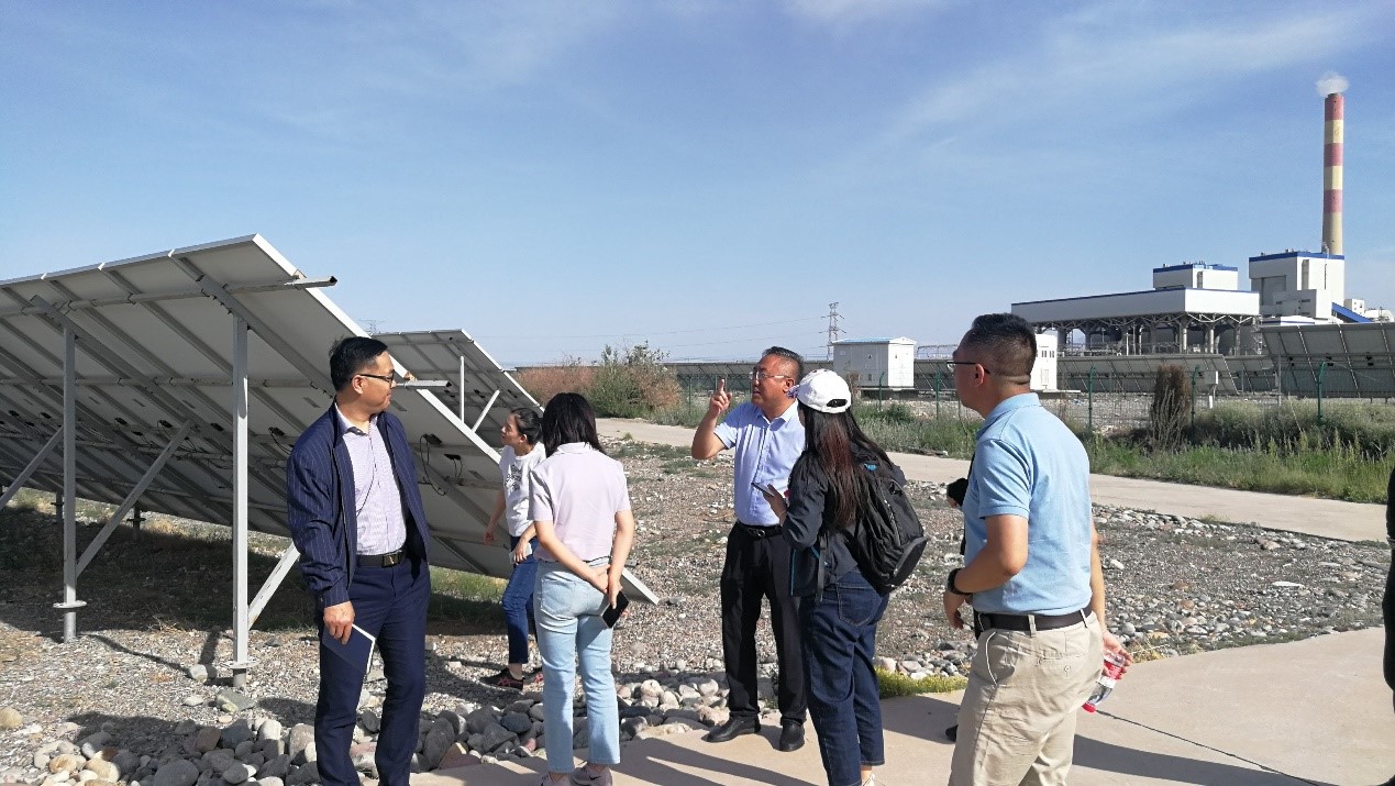 在学校领导的陪同下,杨华先生一行5人首先参观了我校逸夫楼太阳能供热项目、工科实训中心新能源实训室、10.1MW光伏电厂、太阳能发电技术产教融合实训中心。