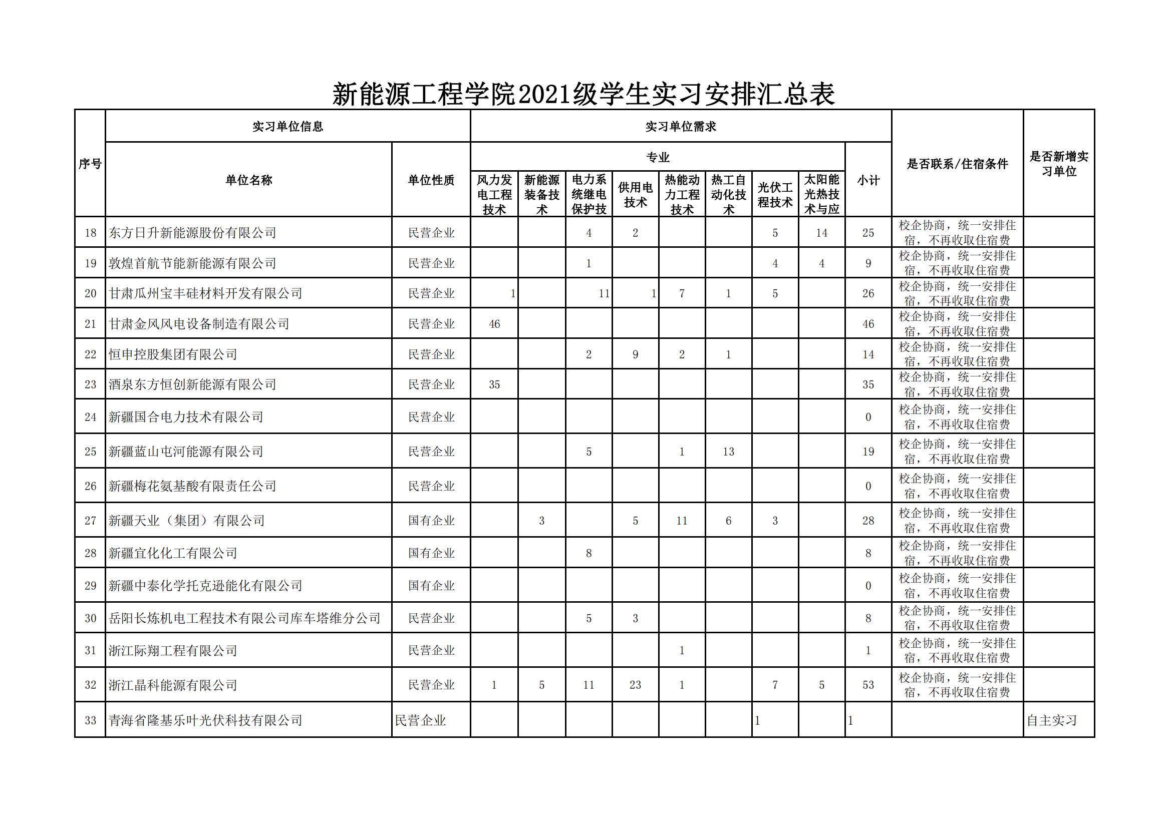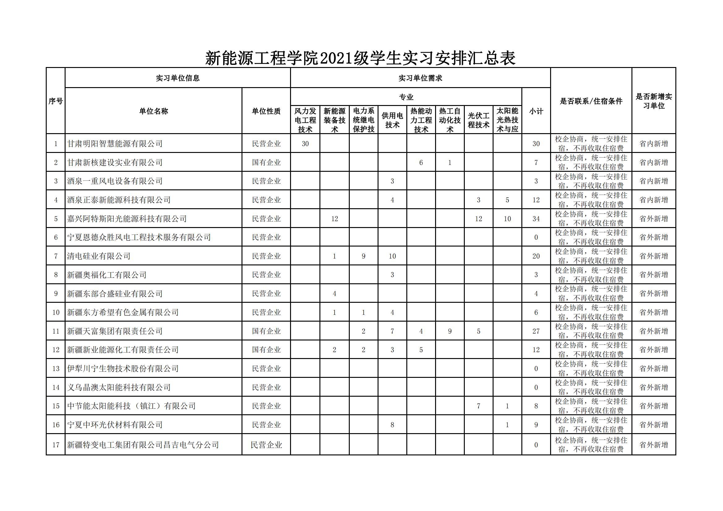 新能源工程学院2021级学生岗位实习单位公示