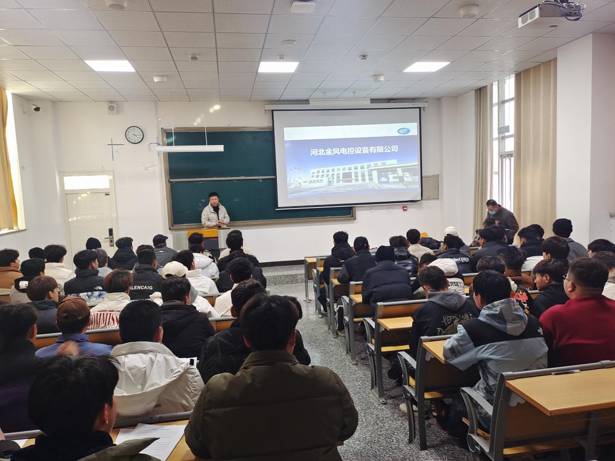 2024年1月2日,锐源风能技术有限公司、河北金风电控设备有限公司在学校致远楼东阶梯教室举办专场宣讲会;我院2021级、2022级风力发电工程技术专业130名学生参加。宣讲会上锐源风能人事经理胡福兴、河北金风木垒厂长李黎明分别对风电行业发展、公司发展情况、招聘工作岗位、员工待遇、员工职业生涯规划等方面做了详细介绍,并与部分同学们进行了互动交流。