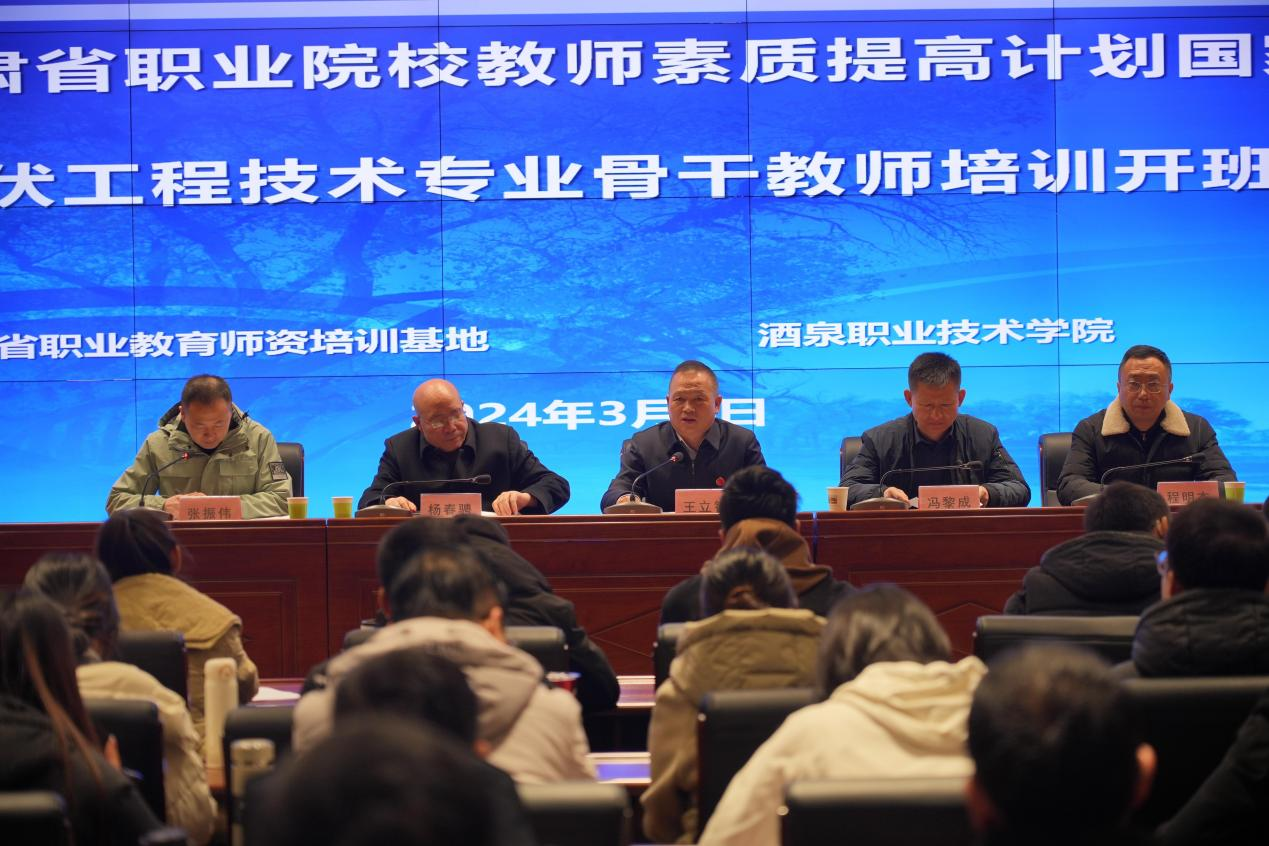 2024年3月4日,由甘肃省教育厅主办、酒泉职业技术学院承办的“2023年甘肃省高等职业院校国家级培训光伏工程技术专业骨干教师培训项目”在我校顺利开班。学校党委委员、副校长王立智,学校党委委员、办公室主任、新能源工程学院党支部书记、院长冯黎成,国际交流学院院长杨春骋,新能源工程学院副院长程明杰等人出席开班仪式,甘肃省10所高职院校共计28位光伏骨干教师参加仪式,本次开班仪式由新能源工程学院副院长张振伟主持。