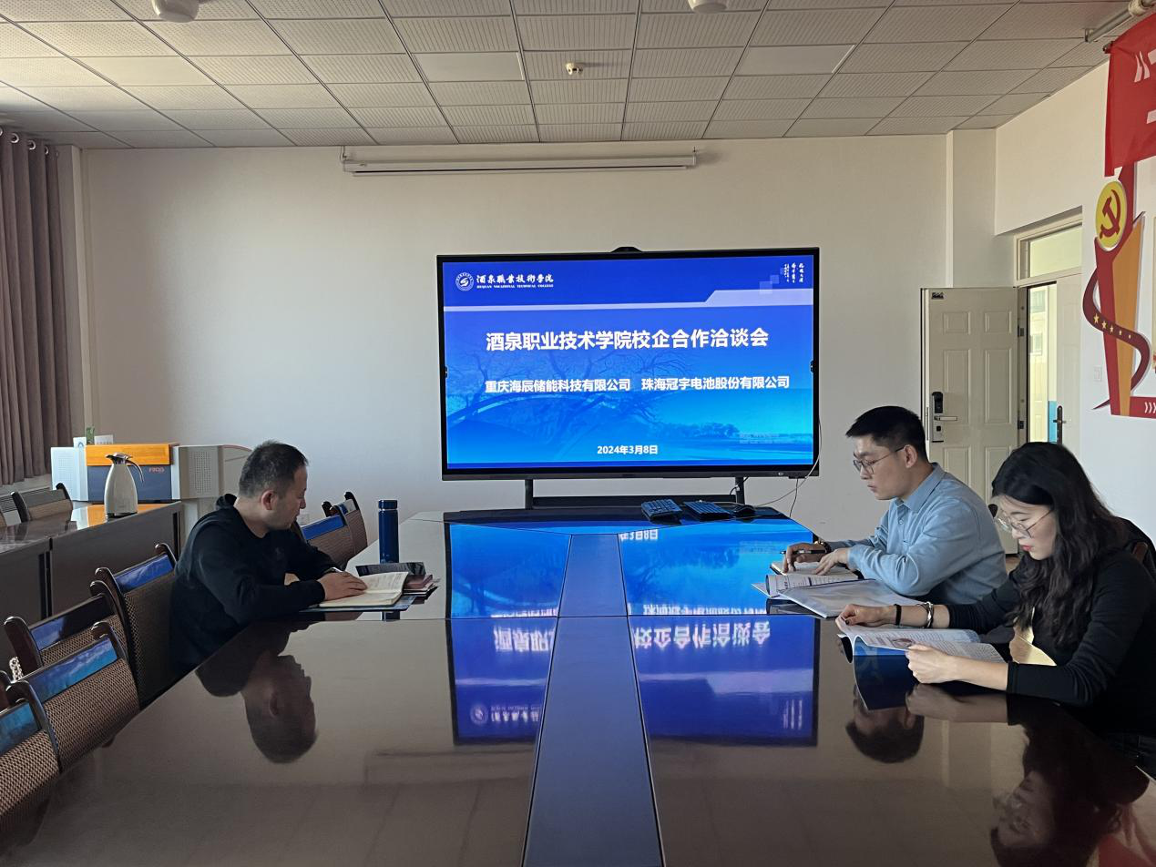 2024年3月7日至9日,肃北博伦矿业开发有限责任公司、杭州热威电热科技有限公司、重庆海辰储能科技有限公司、珠海冠宇电池股份有限公司、欣旺达电动汽车电池有限公司、特变电工股份有限公司天池能源公司、敦煌首航节能新能源有限公司、酒泉东方恒创新能源有限公司、电建甘肃能源公司海外事业部等企业代表先后来访我院进行校园招聘宣讲,并开展校企合作座谈交流。