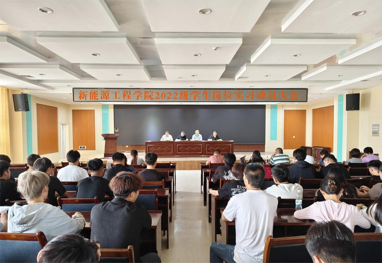 为引导学生做好实习前的各项准备工作,扎实推进专业实习工作有序开展,2024年7月15日下午,新能源工程学院2022级学生实习动员大会在学校图书馆四楼会议室顺利召开。学院党支部书记、院长程明杰,学院党支部副书记李亮,学院副院长张康,实习班级班主任、实习指导教师及450多名实习学生参加了大会,会议由新能源工程学院副院长张振伟主持。