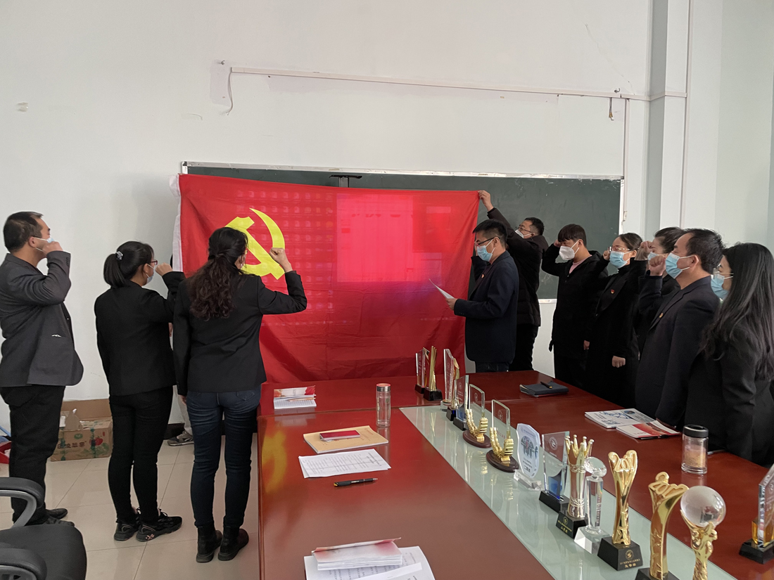 此次会议严格按照各项程序进行。首先,党支部副书记段国萍同志宣读转正流程。接着,会议经过预备党员宣读转正申请书、入党介绍人介绍预备党员现实表现、与会党员讨论、无记名投票等环节,一致通过了预备党员按期转正。党支部副书记段国萍同志为新党员佩戴党徽,在党支部书记范玉敏同志的领誓下,新老党员面对党旗举起右手,进行庄严的入党宣誓仪式。