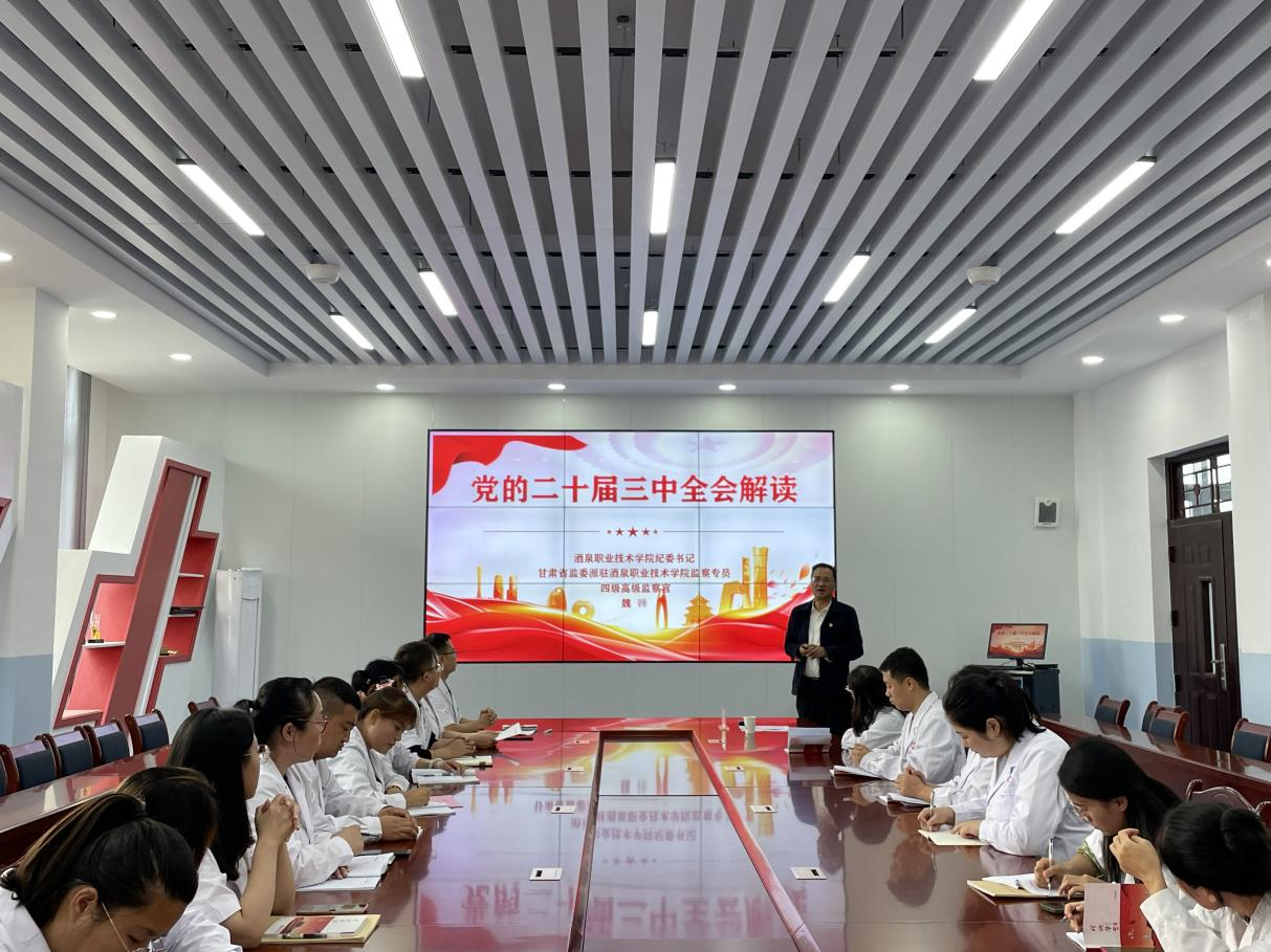 为深入学习贯彻党的二十届三中全会精神,教育引导全体党员干部把思想和行动统一到全会精神上来,2024年9月18日下午,酒泉职业技术学院党委委员、纪委书记、省监委派驻酒泉职业技术学院监察专员、四级高级监察官魏韡为医学院全体教师讲授学习贯彻党的二十届三中全会精神专题党课,解读党的二十届三中全会精神,引导广大教师把思想和行动统一到党中央的决策和部署上来。
