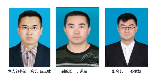 范玉敏:党支部书记、院长,主持学院党建、行政全面工作,分管共青团建设、办公室、组织人事、计划财务、国际交流合作。履行学院党风廉政建设、意识形态和安全工作的第一责任人责任。 于荣哉:党支部宣传委员、副院长,负责学生管理、共青团建设、安全稳定、招生就业、学生资助、应征入伍、校外学生实习安全管理等工作。 孙孟妍:党支部纪检委员、副院长,负责学院教务教学、师资培训、信息化建设、技能鉴定、合作培训、技能竞赛、实训及基地管理、教学实习、乡村振兴等工作。