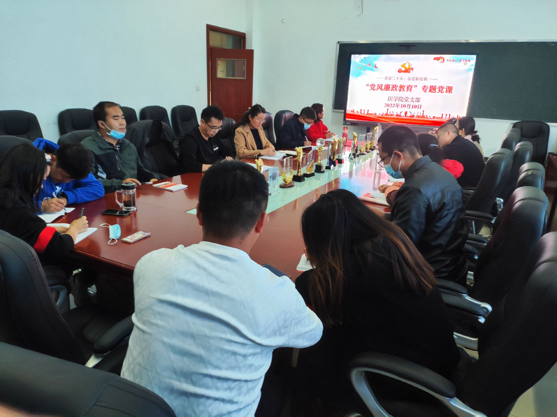 为严明党的政治纪律和政治规矩,积极营造风清气正的育人环境,10月10日下午,医学院全体党员在704会议室上了一堂生动的党风廉政建设专题党课。