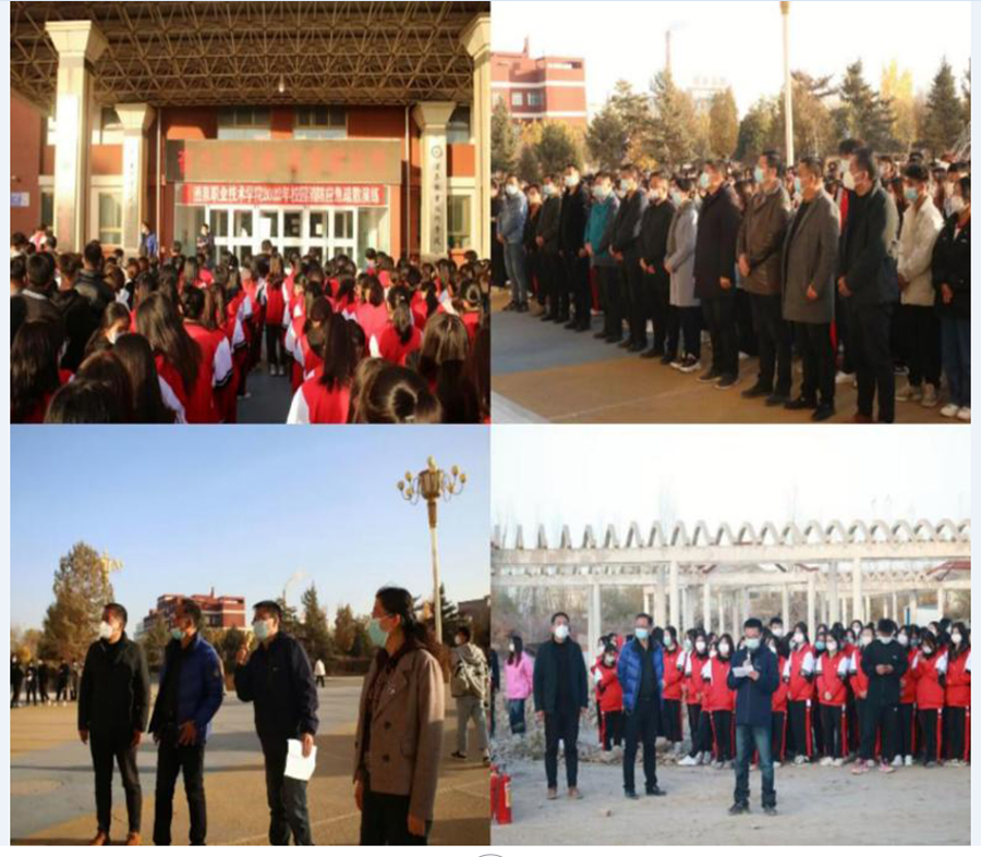 疏散演练结束后,全体师生移至卫校东侧空场地进行灭火实地演练。由应急安稳处专职工作人员针对灭火器的使用进行了现场教学,演示技术要领。随后,参加演练的师生按照学习到的技术要点,正确使用灭火器,做到了冷静沉着应对突发火情。