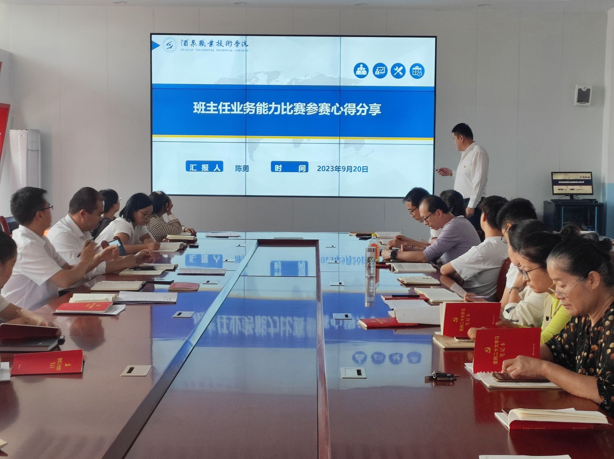 陈老师详细地从“赛事介绍;竞赛要求;参赛资料准备;现场展示分享”等4个方面讲述了他此次参加2023年甘肃省班主任业务能力比赛的经历和经验。