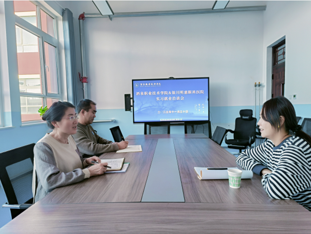 11月30日,银川明慈眼科医院总经理韩丽华到医学院开展学生实习、就业事项洽谈。医学院党支部副书记段国萍、副院长于荣哉参加洽谈会。