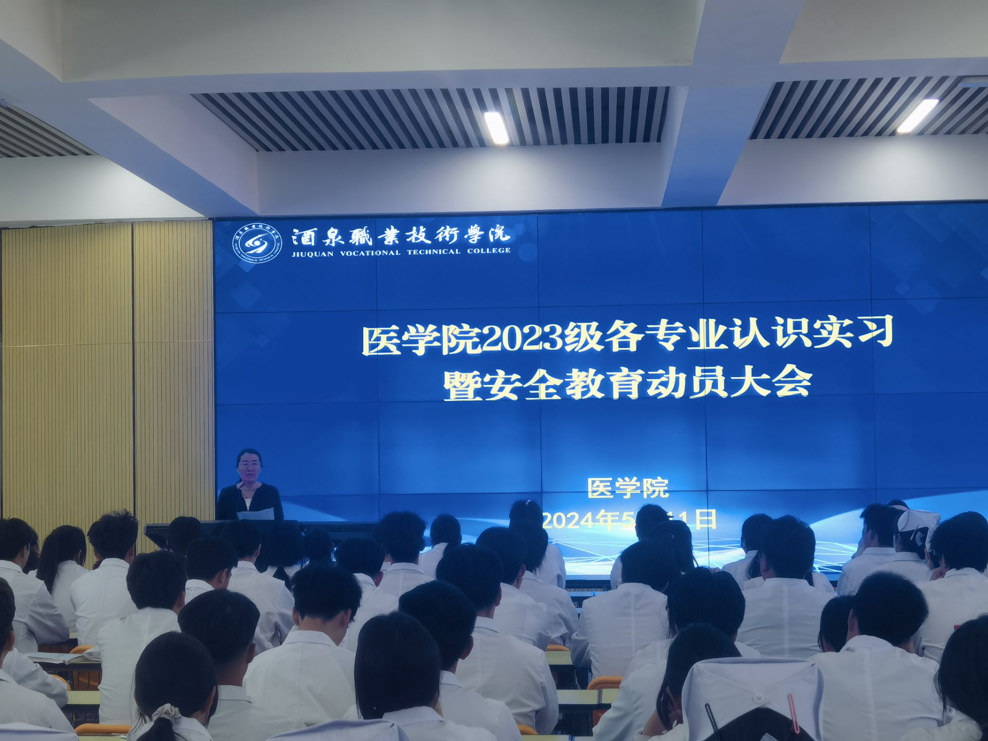 为加深和巩固医学院各专业学生所学的专业知识,引导学生做好见习前的各项准备工作,了解见习的主要内容、目的以及相关注意事项,医学院2023级各专业学生于5月11日下午在弘远楼508教室召开认识实习动员大会,会议由医学院党支部副书记段国萍主持,23级各班班主任、指导老师及23级各专业学生,共计320人参加了本次会议。