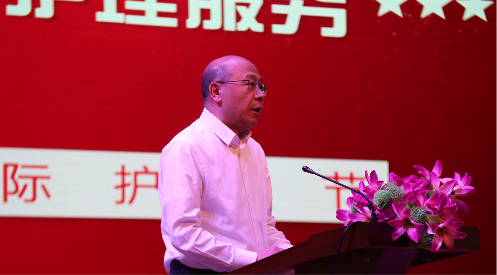 党委书记、校长易志军为大会致辞。他首先代表学校向全体护理工作者致以节日的问候和衷心的感谢,强调了护士在医疗卫生事业中的重要地位,并鼓励广大护生要继续发扬南丁格尔精神,不断提高自身的专业素养和综合能力。并提出与参会的各合作医院持续优化医教协同,共同为我市医疗卫生事业的发展贡献更多的力量。