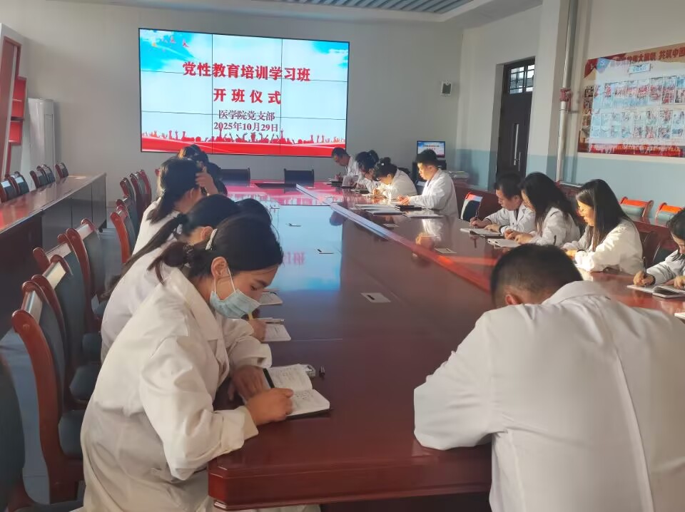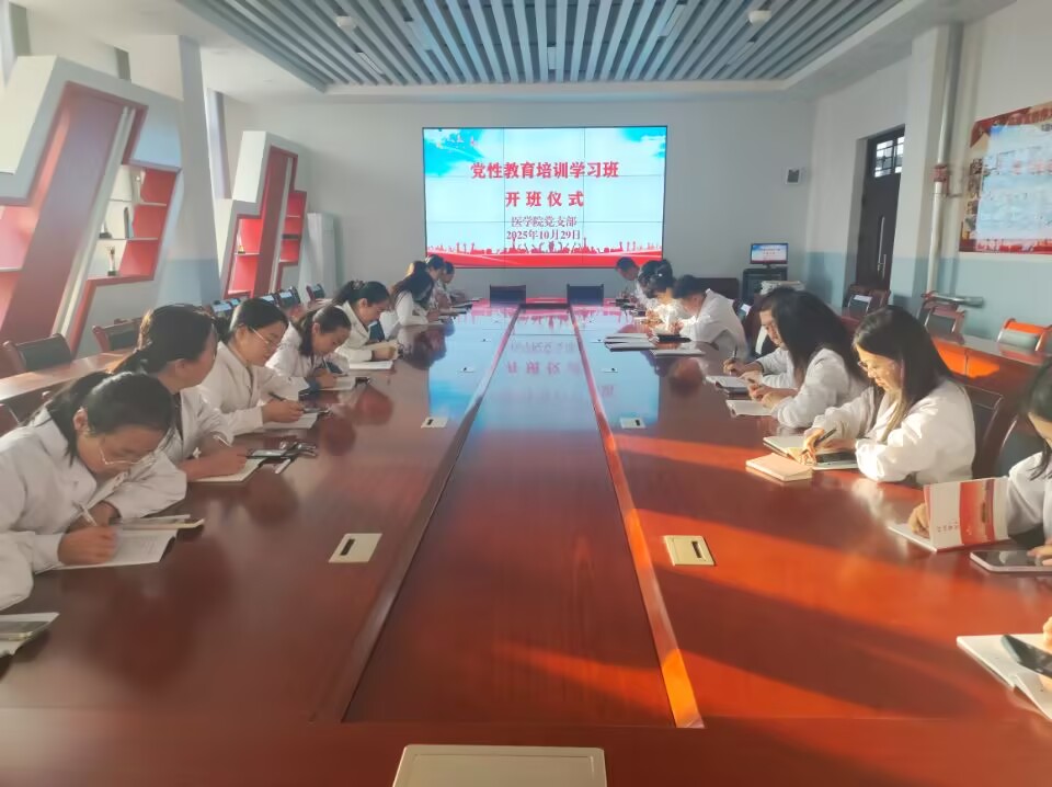 2025年10月29日下午,医学院党性教育培训班开班仪式在弘远楼A501会议室隆重举行。学院党支部书记、院长范玉敏主持会议,全体党员、教职工参加, 本次培训旨在深入贯彻党的二十届四中全会精神,强化党员队伍政治素养,推动党建与医学教育深度融合,为培养“德医双馨”的医学人才注入红色动能。