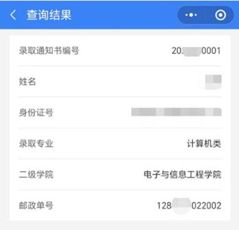 ▼查询到录取专业、邮政单号等信息▼