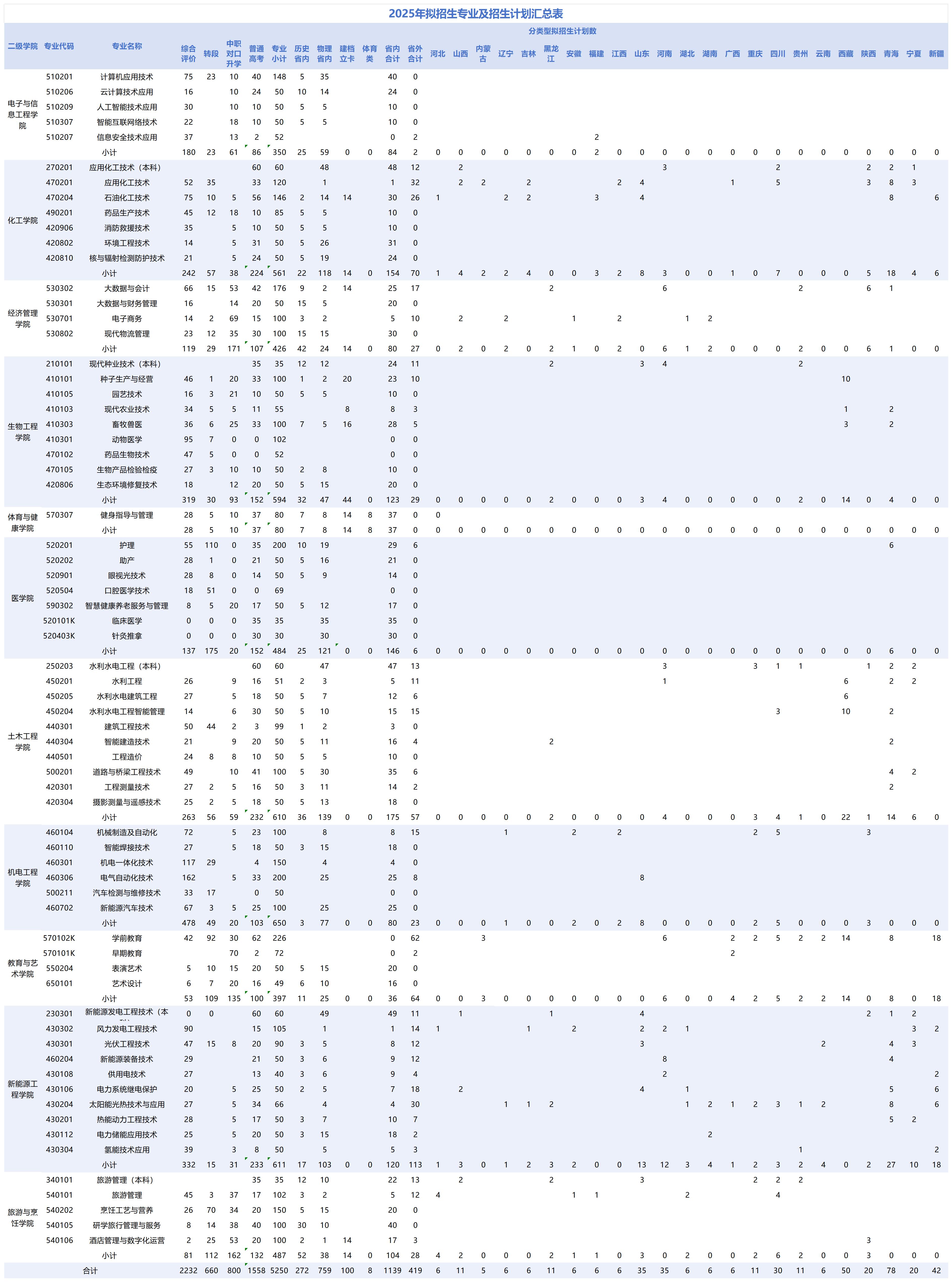 酒泉职业技术大学2025年拟招生专业及计划