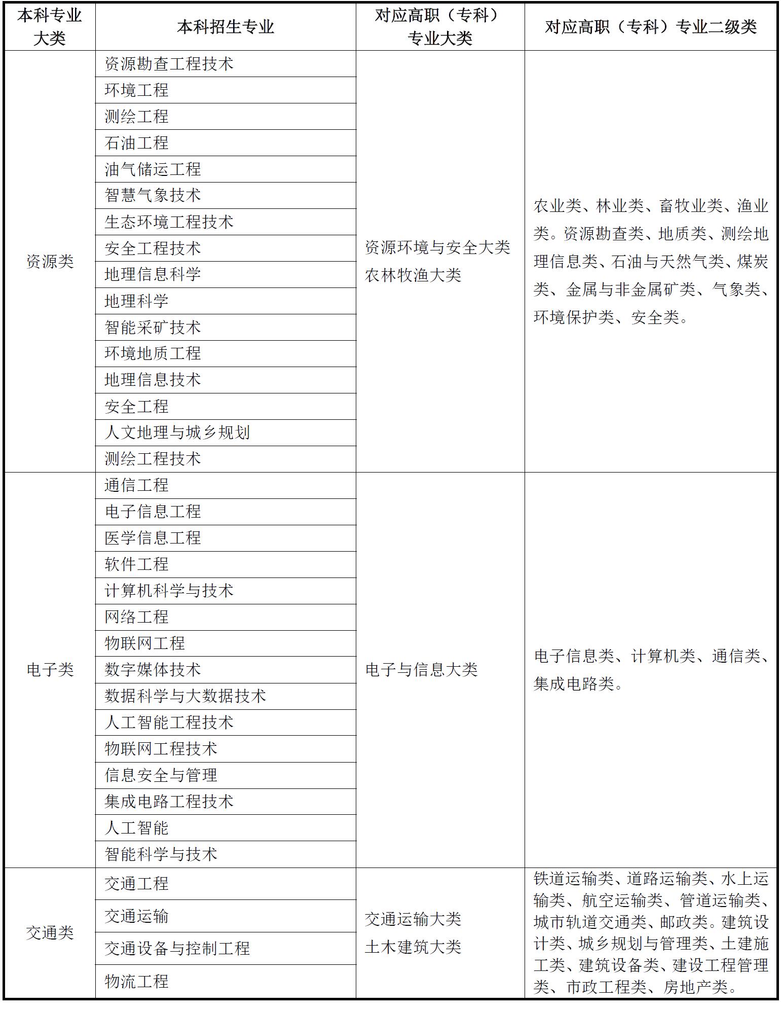 2.高职(专科)和本科专业大类对照表