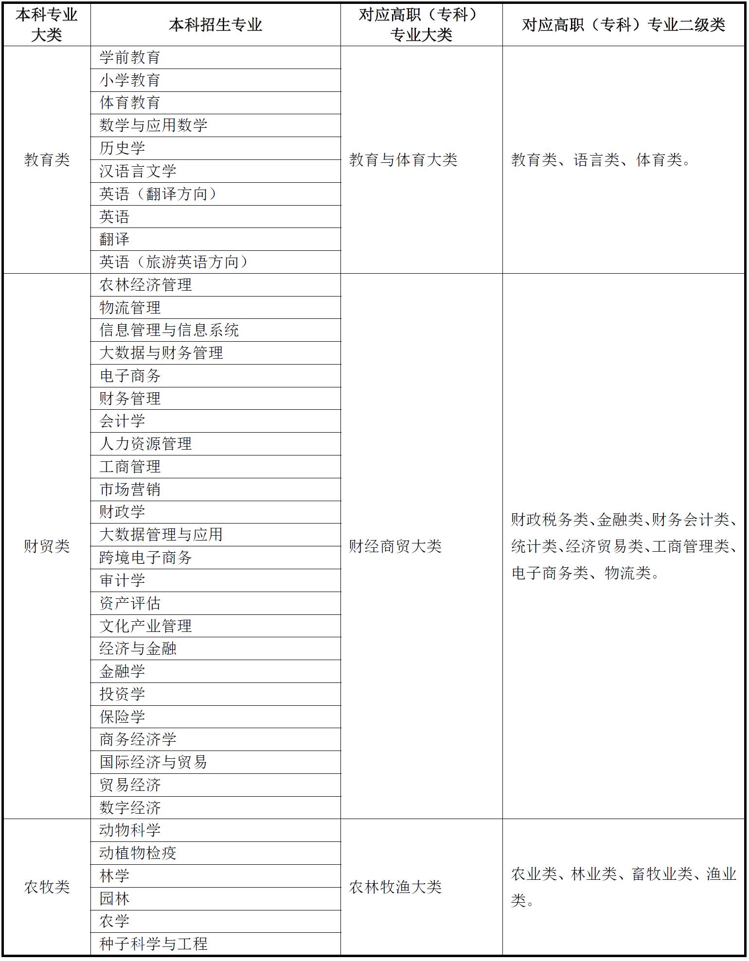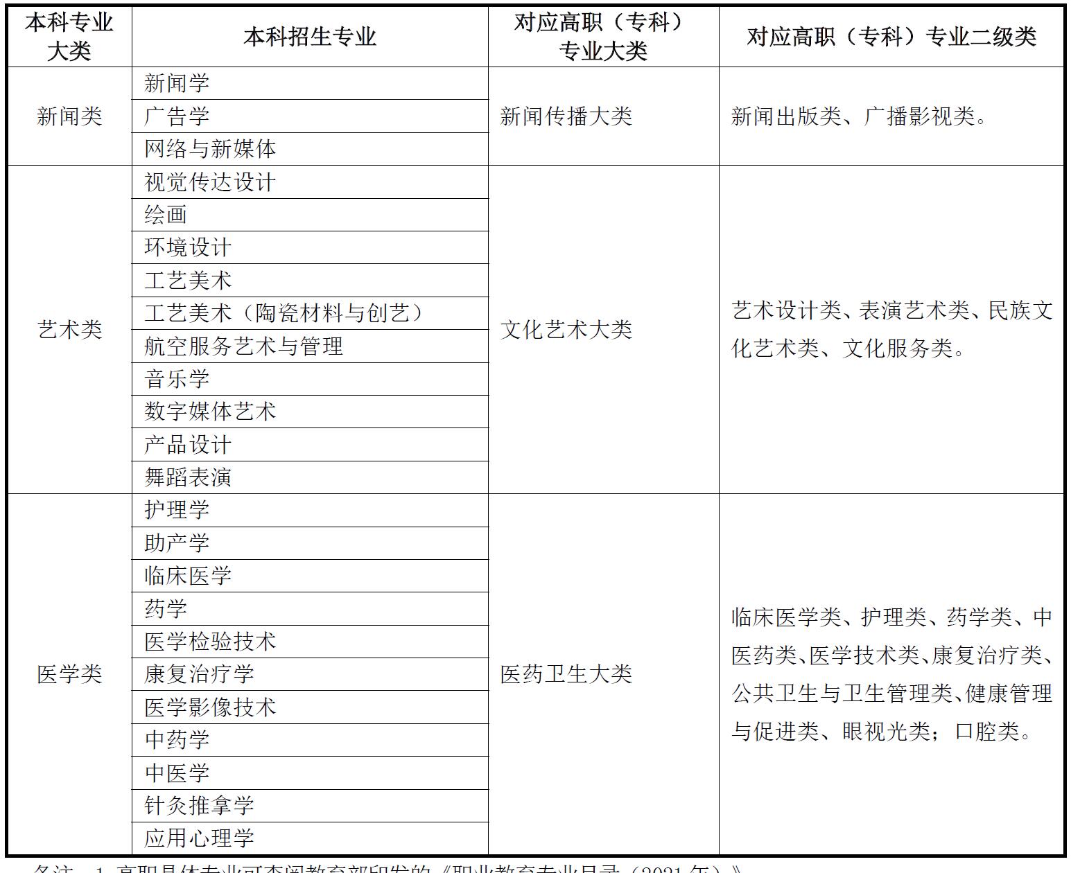 备注:1.高职具体专业可查阅教育部印发的《职业教育专业目录(2021年)》。